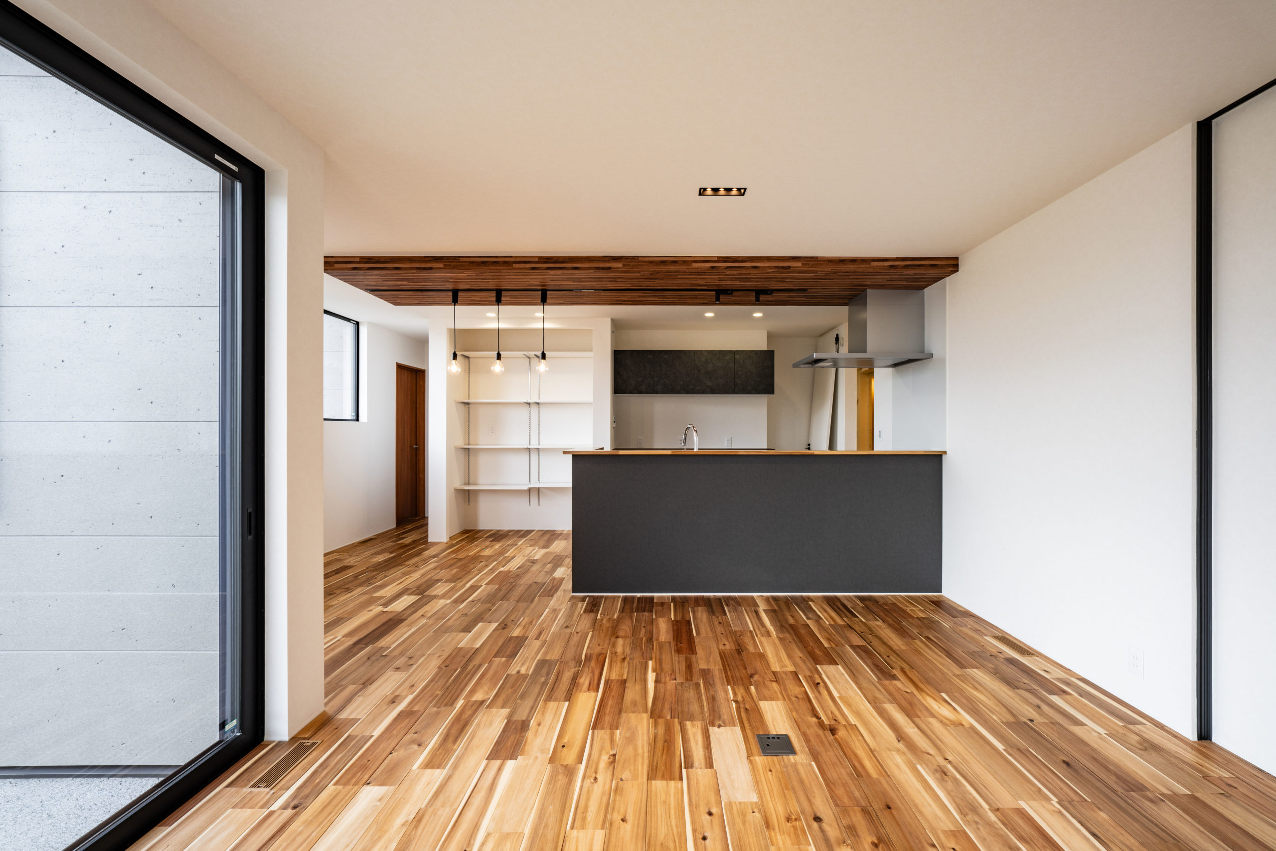 アカシアの床材をつかったプライベートをのびやかに謳歌する平屋