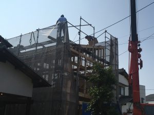 夕方には屋根仕舞まで、大工さん非常に