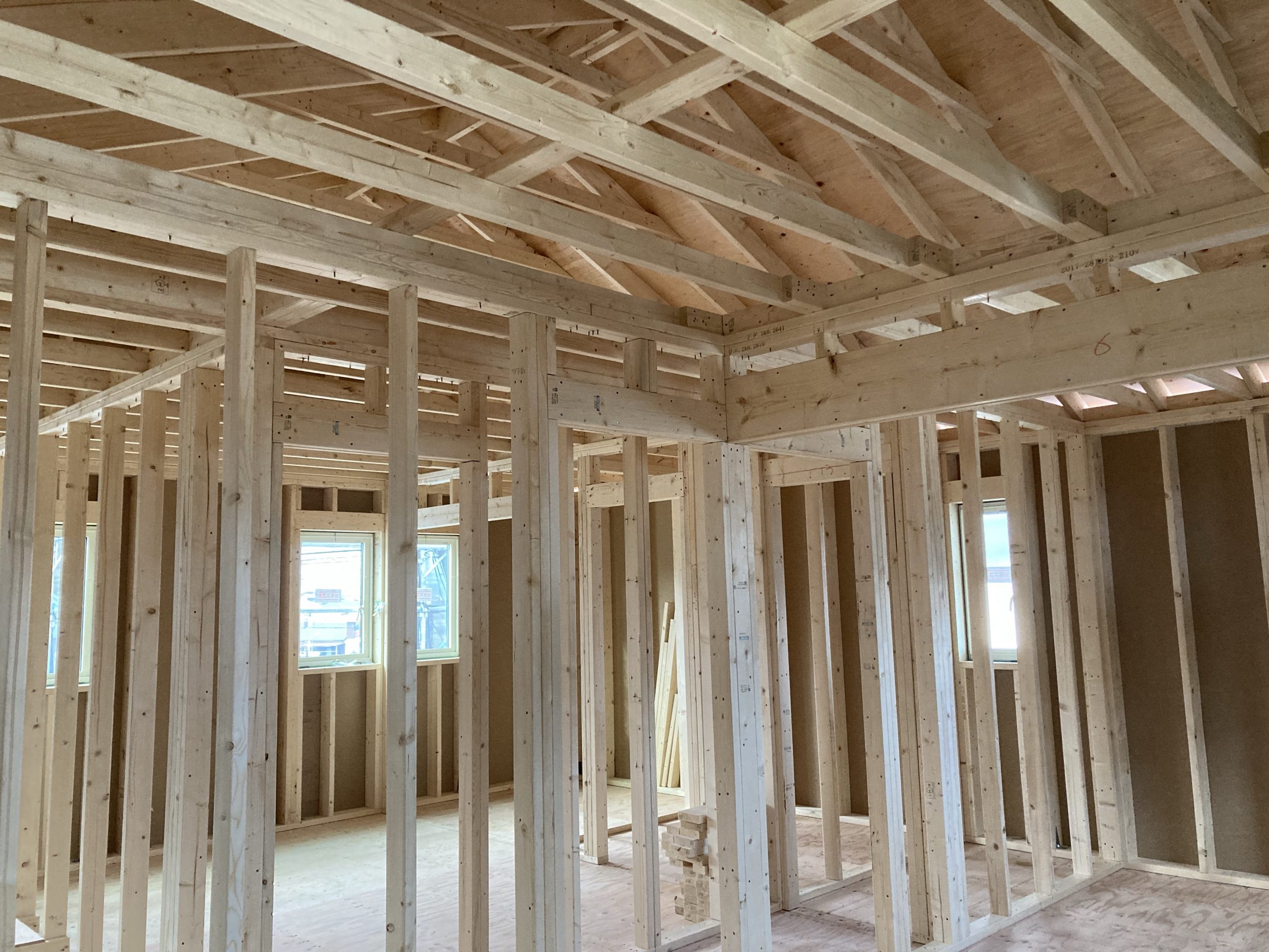 今日は2×6枠組み工法の中間検査できました
