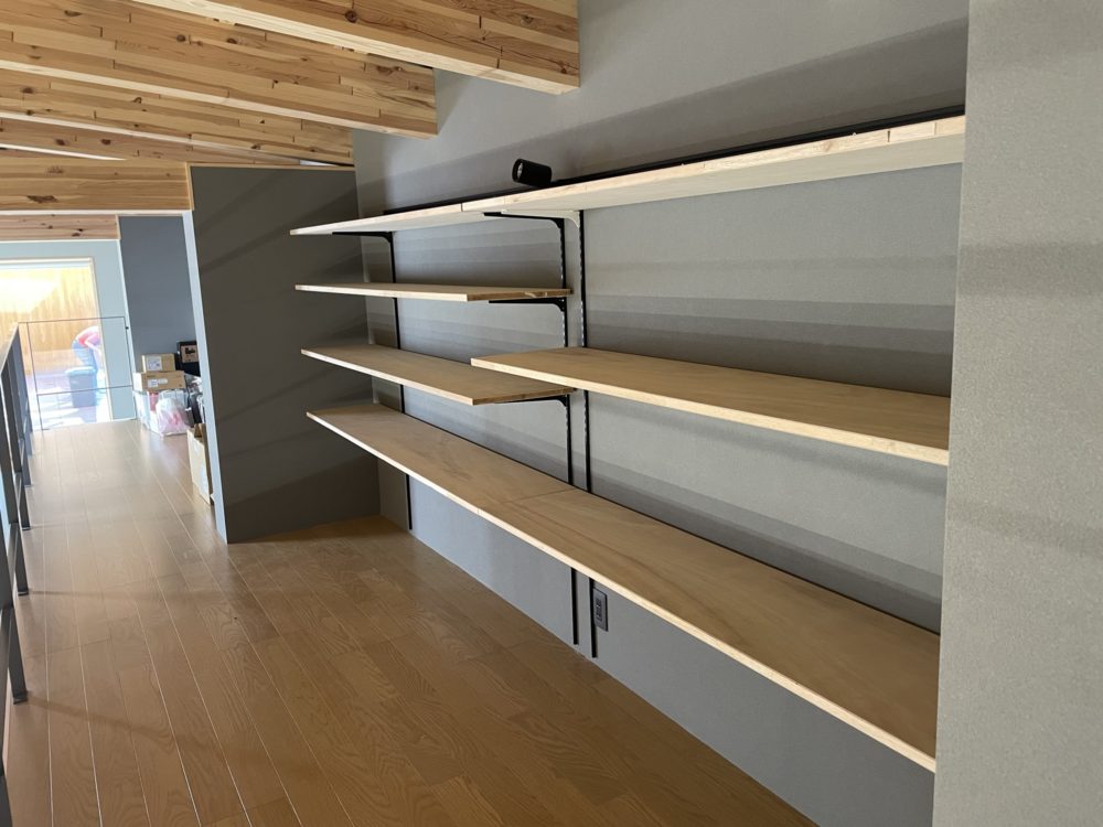 先日「事務所のロフトに物が置ける棚がほしい」と工務のお二人と大工さんたちにお願いしましたら、、、