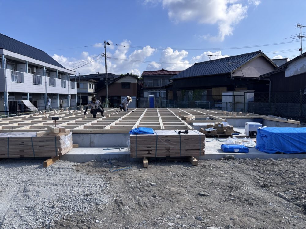 まだまだ暑い日が続きますが現場では深堀棟梁が土台敷きに奮闘中!