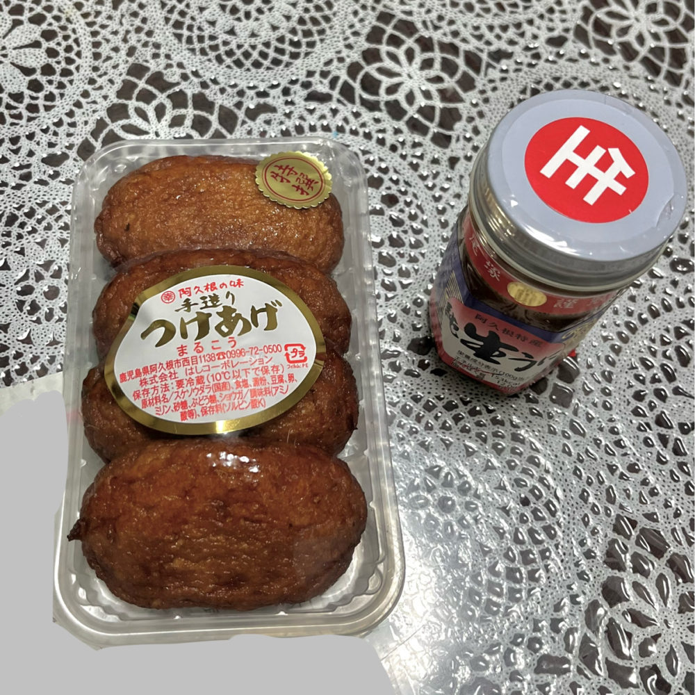 海沿いの道の駅で、懐かしい記憶がよみがえり当時食べていた記憶のあるつけあげ(さつまあげ)とウニをおみやげに購入。写真が実家過ぎてすみません。