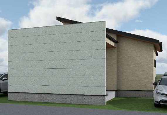 「木柄目軒天の片流れ屋根×大谷石調のファサード壁」がポイントのお家をご提案させて頂きましたのでご紹介します。