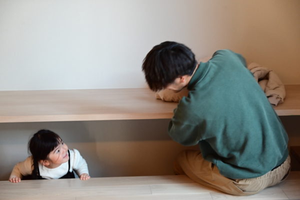 義兄念願の堀込みのタタミスペースでかくれんぼ。