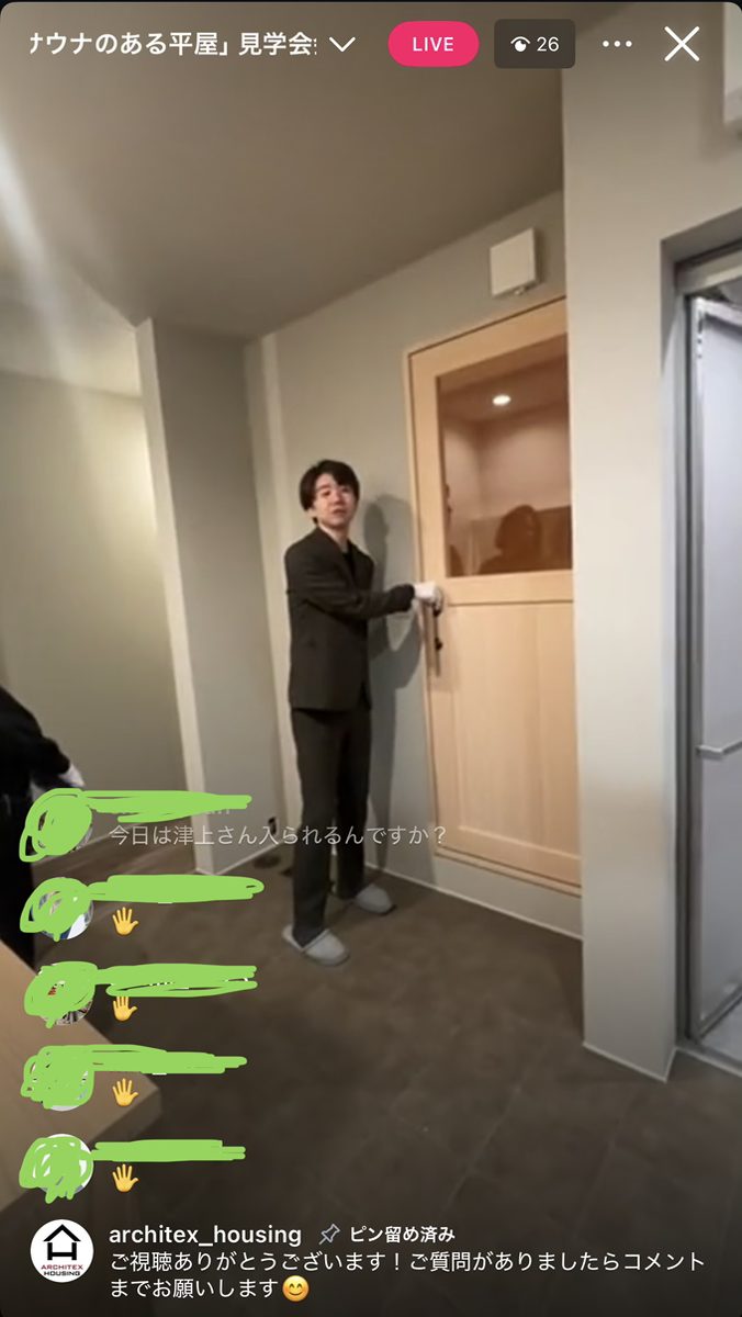 3月のことになりますが、完成見学会を開催させていただいた「サウナのある平屋」のお家からインスタライブ配信をおこなったときのこと。