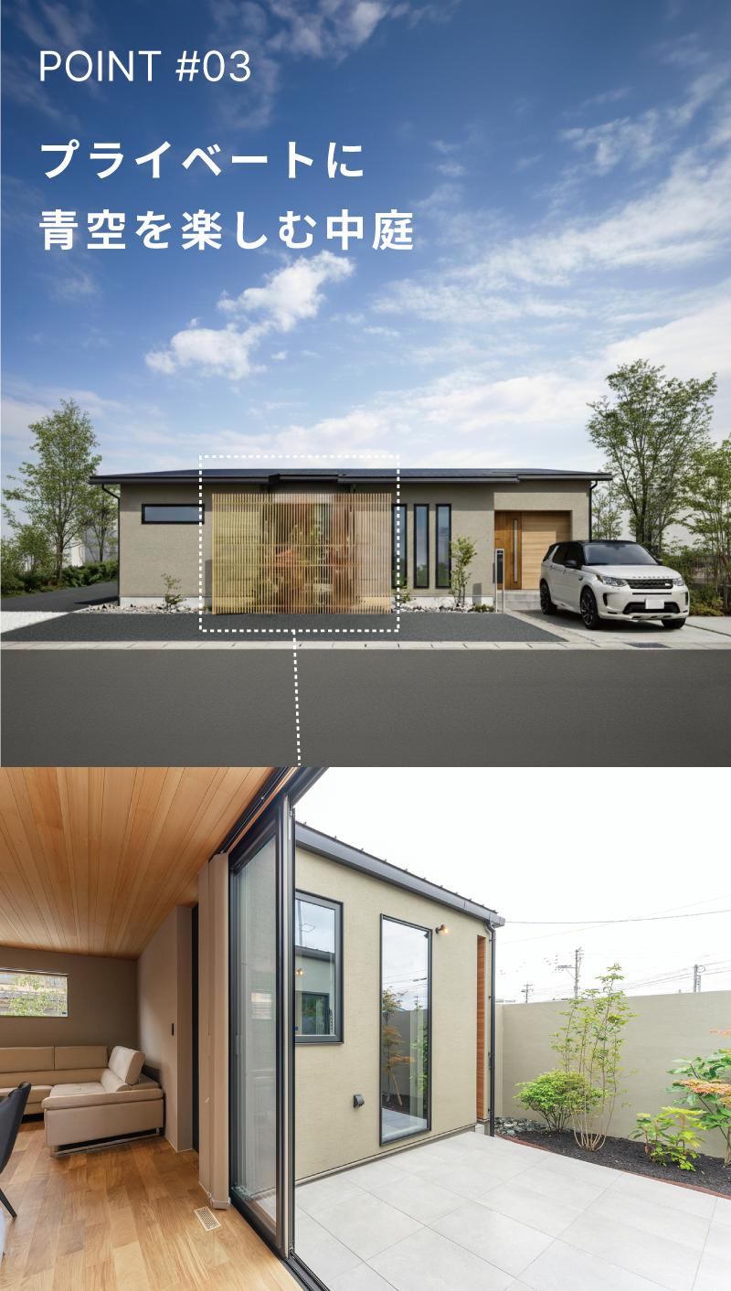 「平屋=高い」そう思っていませんか?同じように考えていたオーナー様が実現した、中庭のある平屋のお住まいを期間限定にてご見学いただけます。外遊びも、室内でゆったり過ごすのも楽しみたい子育てご家族。つながりとプライバシーのバランスを大切にした、こだわりのお家を体感しにぜひお越しください。