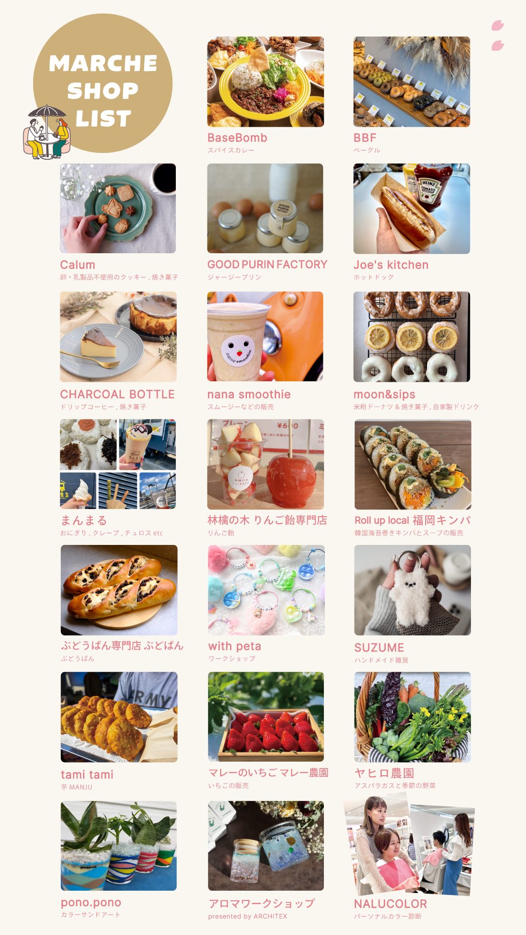 アーキテックスマルシェは、福岡県内のおいしい・たのしい・わくわくなお店が大野城市御笠川に大集合する一日◎