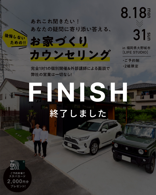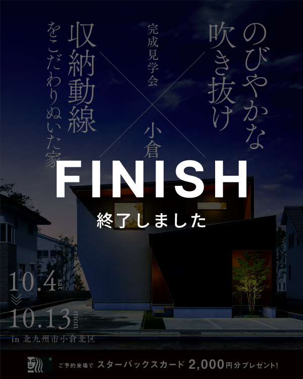 ※終了しました【完成見学会】10/4(土)-13(月祝)のびやかな吹き抜け×収納動線こだわりぬいた家 in 小倉北区