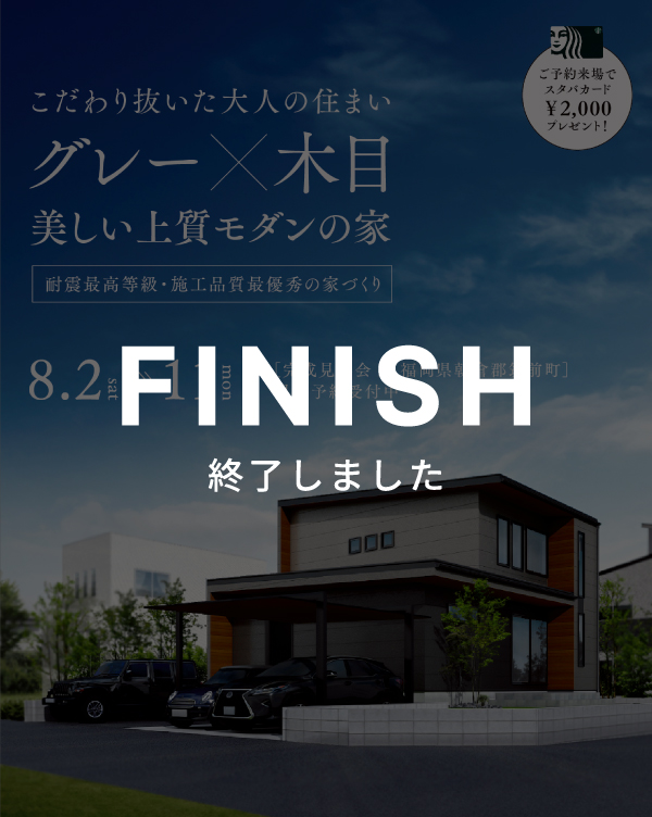 ※終了しました【完成見学会】8/2(土)-11(月)こだわり抜いた大人の住まい グレー×木目が美しい 上質モダンの家 in 筑前町